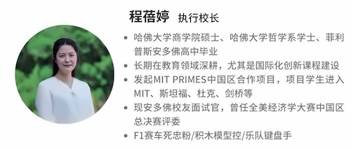 其中,学校管理团队负责学校运营管理、课程研发、申请规划、学生生活等各项事务,具备多年海外学习生活经历及10+年教育行业经验。