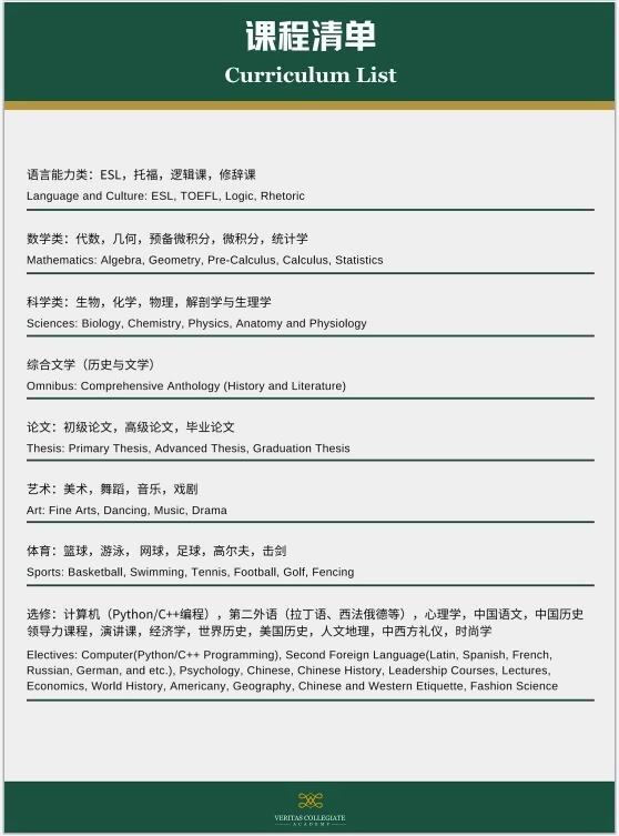 此课程体系严格按照美国总校的古典精英教学体系的大纲,融入中国特有的元素,使学生不出国门就能体验纯正美高教学体系。
