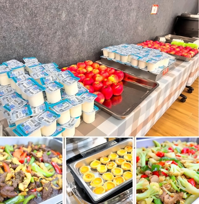 开学**天,上午第四节课的下课铃响起,同学们都满怀期待地进入餐厅,好奇地一探新鲜:首先映入眼帘的是一长排取餐区,崭新的自助餐炉、餐具盛放着菜肴、点心、水果、饮料……让学生们怦然心动!